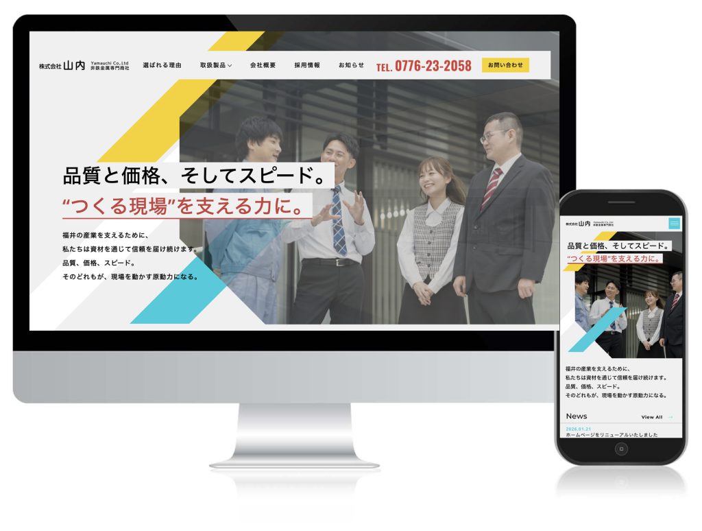 エーラインでは、福井県内で事業を展開されている山内様の公式ホームページ制作を担当しました。「ホームページを新しくしたい」